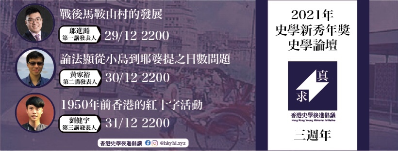 各位學界友好,過去一年本會致力於開拓不同文化歷史項目,適逢創會三週年,今年 「史學新秀年獎 2021 史學論壇」將改為由青年學人直播分享個人研究成果,影片亦會於稍後上載至本會不同社交平台。
