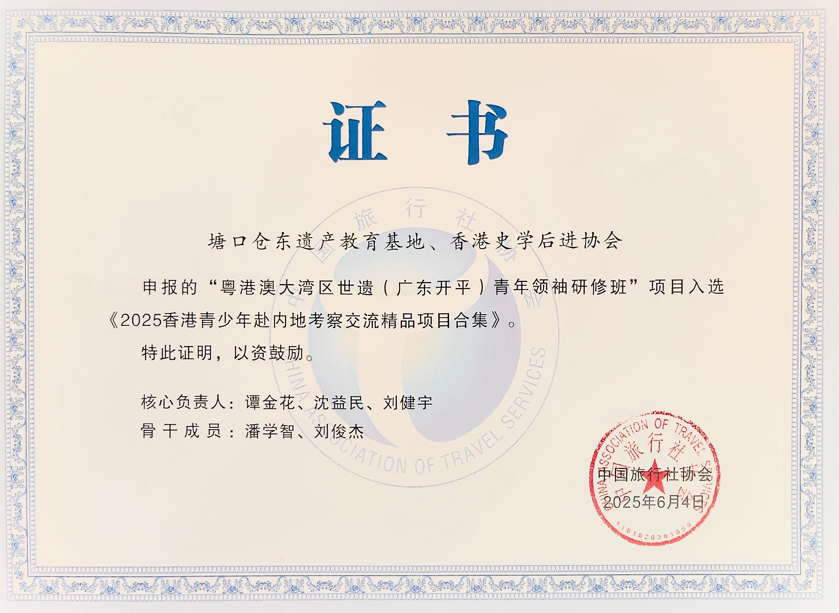 列入中國旅行社協會(研學旅行分會)《2025香港青少年赴内地考察交流精品項目合集》